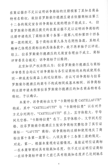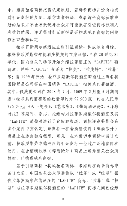 自2016年以來,商評(píng)委、北京知識(shí)產(chǎn)權(quán)法院已經(jīng)先后在十幾個(gè)裁定或行政判決中認(rèn)定“LAFITE”為馳名商標(biāo),但大多還在行政訴訟程序之中。本案是首個(gè)終審判決,對(duì)“LAFITE”在中國(guó)的馳名商標(biāo)保護(hù)之路,具有里程碑式的重要意義。
